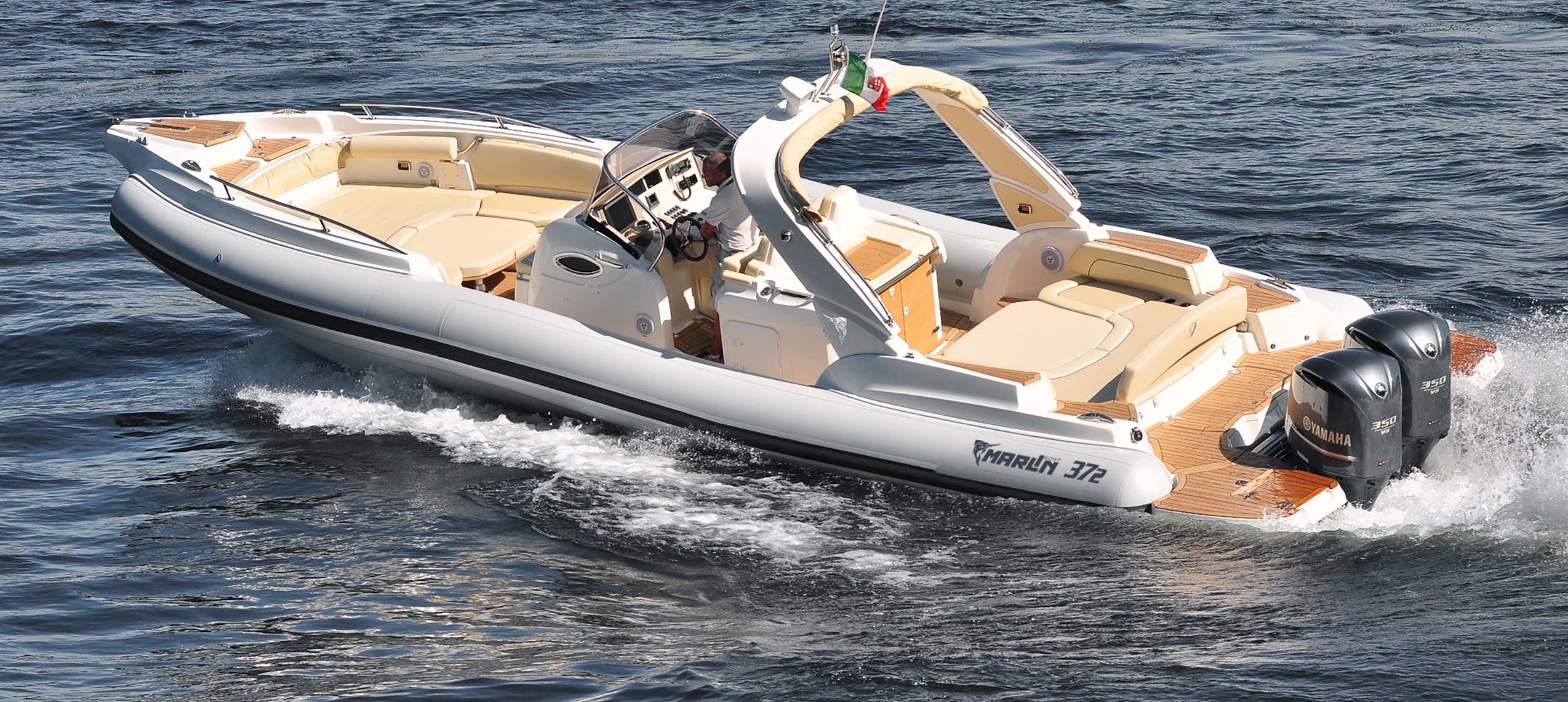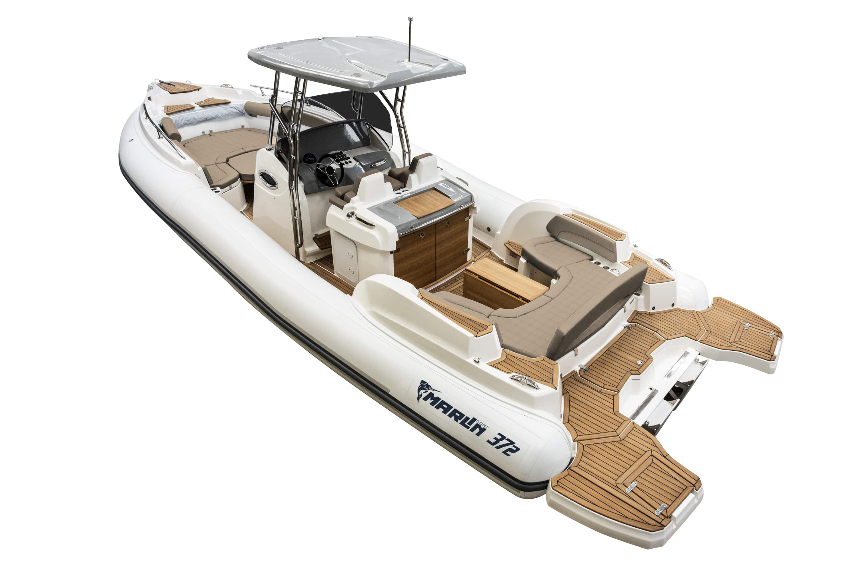 | Stainless steel and fyberglass Hard Top with led lights and stern bimini |