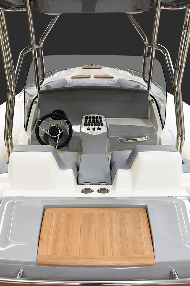 | Console with windscreen, stainless steel handtrail, instruments holder, steering, steering wheel, two seats front sitting |