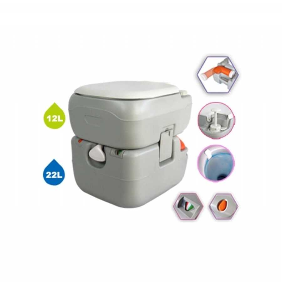 Kampta, karavanda, teknede ve hasta tuvaleti olarak kullanıma uygun lüks tip bir portatif tuvalettir.